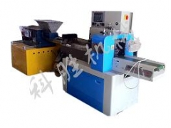 程序控制,方便简作,挤出的泥长度可以在程序中控制。可以和包装机联机跟踪 挤出系统;主要是由螺杆和料筒组成,是挤出机的关键部分,彩泥通过在挤出系统 中挤压而均匀的流体,并在这一过程所建立的压力下,被螺杆连续地定量定压地挤出机头